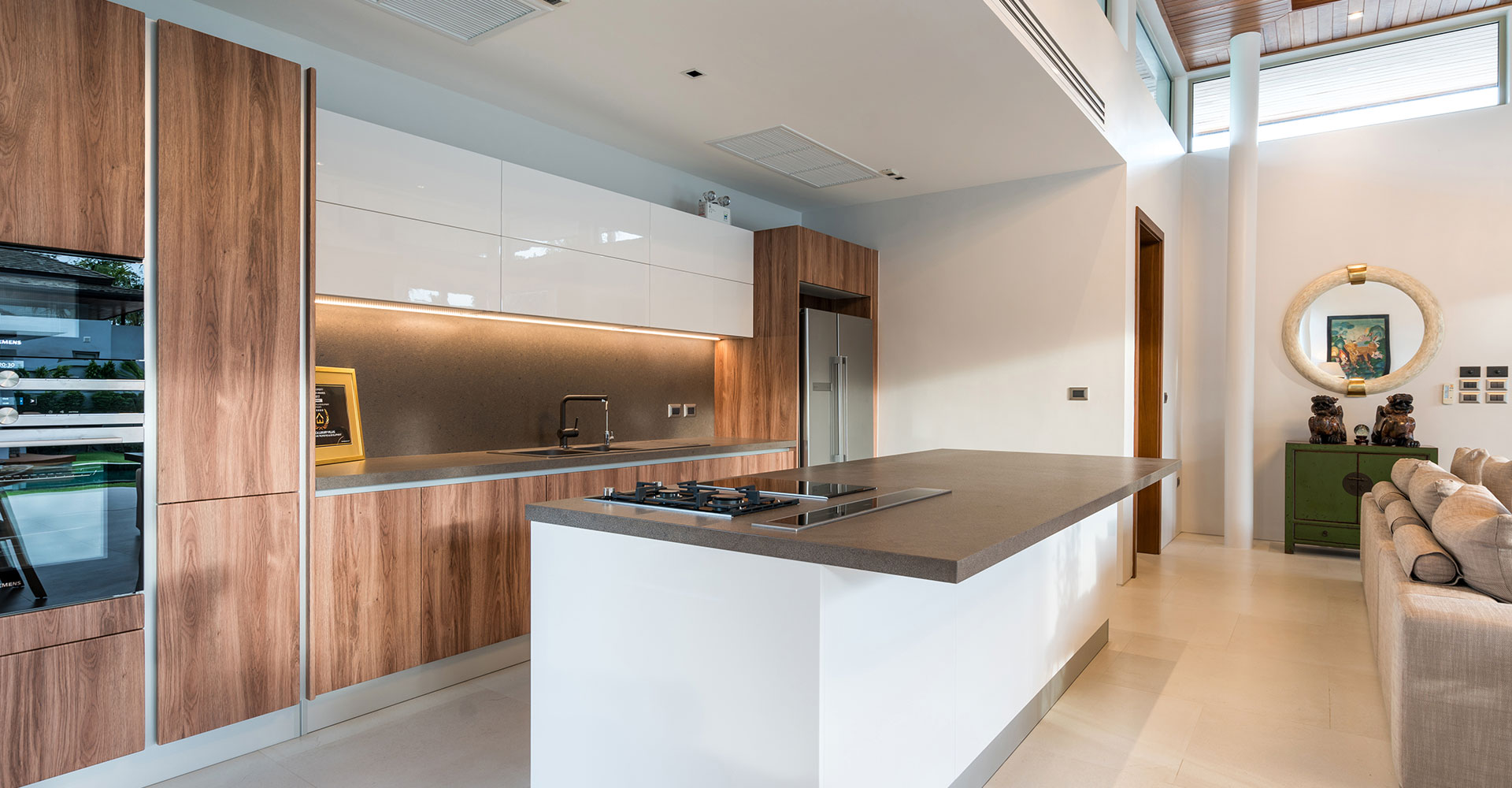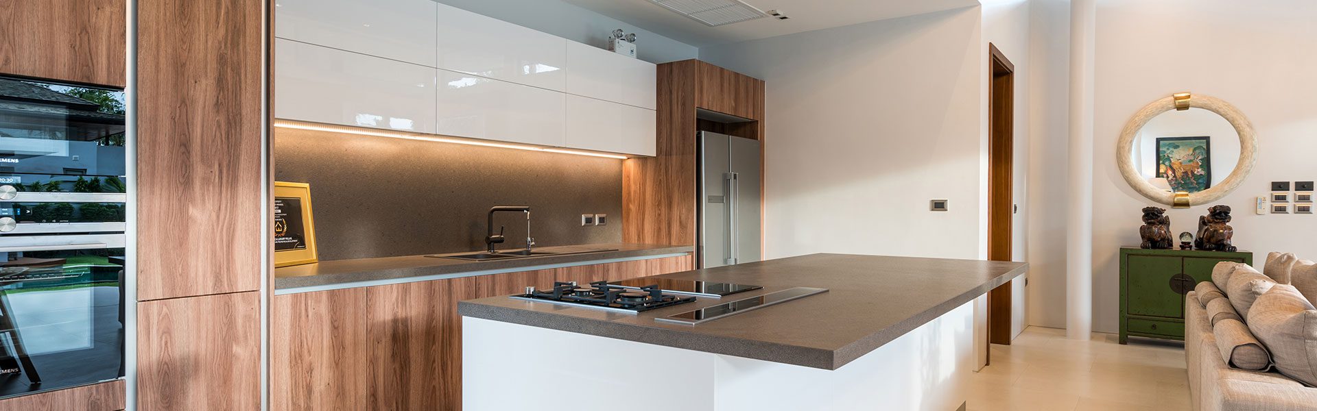 Via de inkom met ingemaakte kastenwand komt u in de open en lichtrijke eet -en leefruimte met design keuken gescheiden door een keukeneiland. De talrijke kwalitatieve toestellen maken deze keuken TOP! De keuken & eetruimte zijn gekenmerkt met indirecte verlichting waardoor een verfijnde en luxueuze sfeer wordt gecreëerd. In het hoekappartement overheersen grote raampartijen tot op de grond, aan natuurlijk licht geen gebrek! Via de leefruimte of slaapkamer krijg je toegang tot het terras van maar liefst 57m². Het leefterras is de hele dag overgoten met zon en biedt een oase van rust die uitkijkt op groen. Op vandaag zijn er 2 slaapkamers met elk hun eigen badkamer, vervaardigd uit kwalitatief materiaal. De ene slaapkamer is extra voorzien van een dressing, de andere van een zithoek/bureau. Gezien de grote van deze ruimte bestaat de mogelijkheid om deze op te delen in 2 slaapkamers. Extra troef: 2 staanplaatsen en berging.